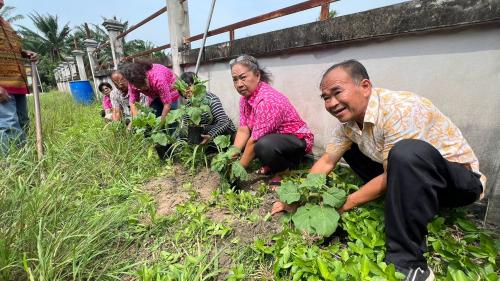 ดำเนินการส่งเสริมการปลูกผักสวนครัวเพื่อสร้างความมั่นคงทางอาหาร การแจกเมล็ดพันธุ์ผัก การแจกพันธุ์กล้าไม้ เป็นต้น ณ ตำบลหนองใหญ่ อำเภอหนองใหญ่ จังหวัดชลบุรี