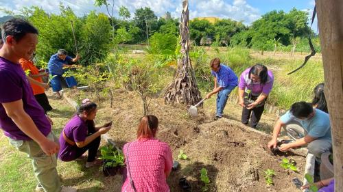 กิจกรรมขยายผลการน้อมนำหลักปรัญาของเศรษฐกิจพอเพียงสู่ครัวเรือนโดยรอบศูนย์เรียนรู้ฯ จำนวน 10 ครัวเรือน ดำเนินการ ณ ศูนย์เรียนรู้ฯ โคก หนอง นา แปลงของ นายพุทธิวงศ์ ศรีกุลภาณุสิทธิ์ หมู่ที่ 1 บ้านป่าแดง